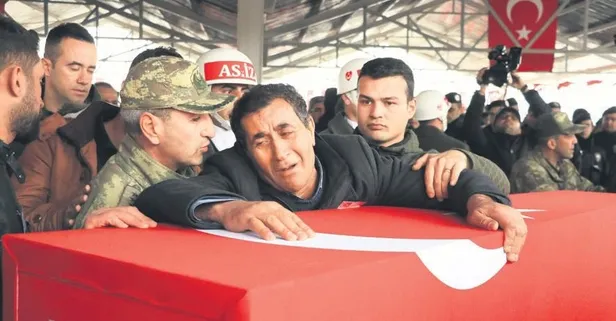 Suriye'nin İdlib kentinde rejimin düzenlediği hava saldırısı sonucu Tankçı Sözleşmeli Er Mustafa Ertürk (25) şehadete erdi. Baba Osman Ertürk, Mustafa’nın tabutuna sarılıp “Beni bırakma oğlum” diye ağladı.