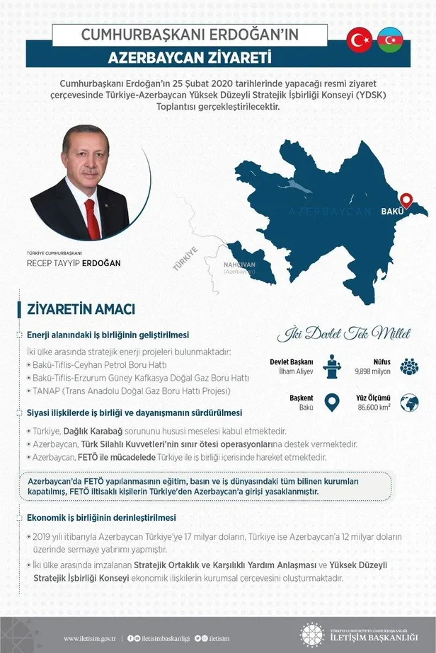 Başkan Erdoğan, resmi temaslarda bulunmak üzere Azerbaycan'a hareket etti. Başkan Erdoğan ziyareti öncesi açıklamalarda bulundu. Erdoğan'ın konuşmasının satır başları şöyle: