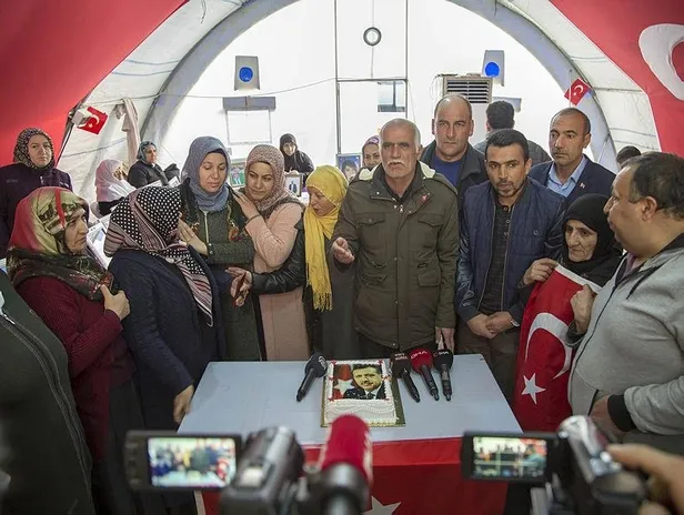 Evlat nöbetini sürdüren aileler, Cumhurbaşkanı Erdoğan'ın 66'ncı doğum günü dolayısıyla hazırlattıkları, üzerinde fotoğrafı bulunan pastayı devlet korumasındaki çocuklara gönderdi.