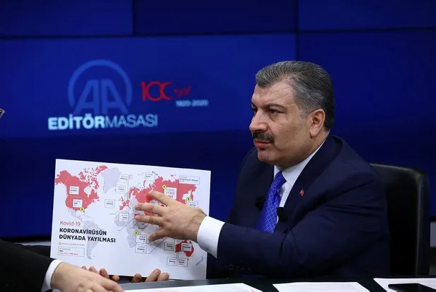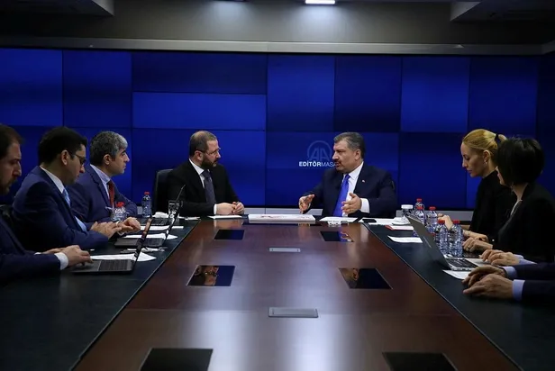 Sağlık Bakanı Fahrettin Koca, AA Editör Masası'nda Çin'in ardından çeşitli ülkelerde görülen yeni tip koronavirüs (Kovid-19) ve alınan önlemlere ilişkin değerlendirmelerde bulundu, soruları yanıtladı.
