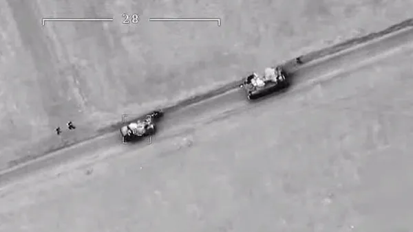 İnsansız Hava Araçları'ndan (İHA) alınan görüntülerde atış destek unsurlarıyla birlikte hareketli rejim konvoyunun vurulduğu görüntüler kaydedildi.