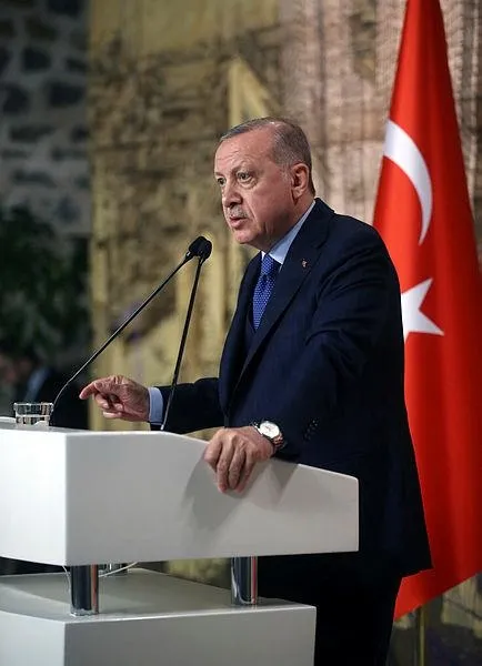 Suriye'de 30 km derinliğinde bir güvenli bölgeyi oluşturmak için çalışmalarımız devam ediyor. Dün sayın Putin'e de Trump'a da söyledim ve diğerlerine de. Bize verilen söz neydi? "YPG'yi PYD'yi bunlar bu bölgeden çıkaracaklardı. Ne Rusya verdiği sözü tutabildi ne Amerika; çıkaramadılar. PYD YPG buralarda yine terör estiriyorlar. Bunları her iki liderle de paylaştım. Kalkıp şunu diyemiyorlar. "Hayır çıkardık" diyemiyorlar. Ama biz yazılı sözleşmeyle onlardan bunun sözünü aldık, altında imzaları var. ve bu sözleri yerine getiremediler. Ve şimdi kalkıp bize yok şöyle yok böyle diyorlar. Biz gereğini yapıyoruz ama onlar gereğini yapamıyorlar. Ve teröristler her fırsatta saldırıyor veya sızmaya çalışıyorlar. İdlib'de de mutabakatlara uymadı. Rejim yüz bin defa ateşkesi bozduğu halde bunu asla gündeme getiremeyenler, kendi topraklarını savunan muhalifleri gerekçe gösteriyor. Masum insanlar öldürülürken seslerini çıkarmayanlar, bizim huzuru koruma çalışmalarımıza ateşle karşılık veriyorlar. Bunu sadece seyretmekle kalıp üzüntü beyanlarında bulunanlar samimi değildir. Terör örgütlerine binlerce TIR silah, mühimmat, araç gereç yardımını yapanlar; rejim çok ciddi manada silah mühimmat füze her şeyi yine bu ülkelerden alırken, kimse Türkiye'ye ne bu konuda bir destek veriyor ne de bu mültecilerle ilgili bize destek veriyor.