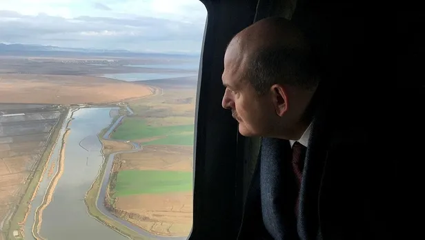 Buradan helikopterle Edirne'ye geçen Soylu, Türkiye-Yunanistan sınırındaki sığınmacı hareketliliği ve bölgeyi havadan inceledi.