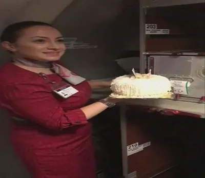 Kaptan pilotun anonsu ve ardından kabin ekiplerinin doğum günü pastası karşısında şaşıran Hanözü, uçaktaki diğer yolcuların alkışları eşliğinde pastayı kesti. İdlib gazisi sürpriz doğum günü kutlaması için ekibe teşekkür ederken, bu özel anlar da cep telefonu kamerası tarafından kaydedildi.