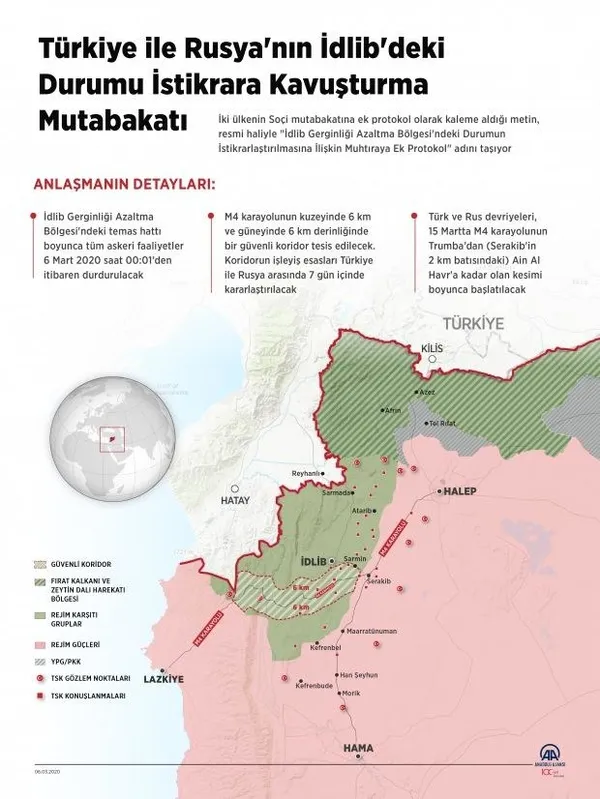 Başkan Recep Tayyip Erdoğan ile Rusya Devlet Başkanı Vladimir Putin arasında 5 Mart'ta gerçekleştirilen toplantının ardından İdlib'de ateşkes konusunda mutabık kalınmıştı.