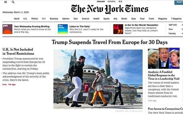 New York Times, ABD'nin Avrupa'ya seyahat yasağını İstanbul fotoğrafıyla yayınladı.