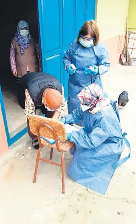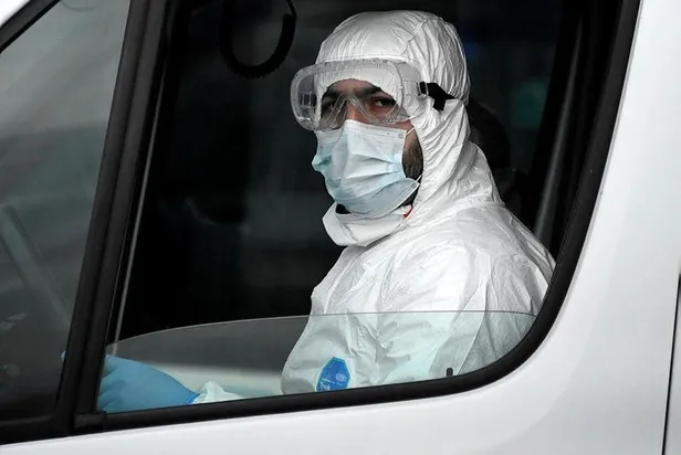 Sağlık görevlileri maske ve gözlükle çalıştı.