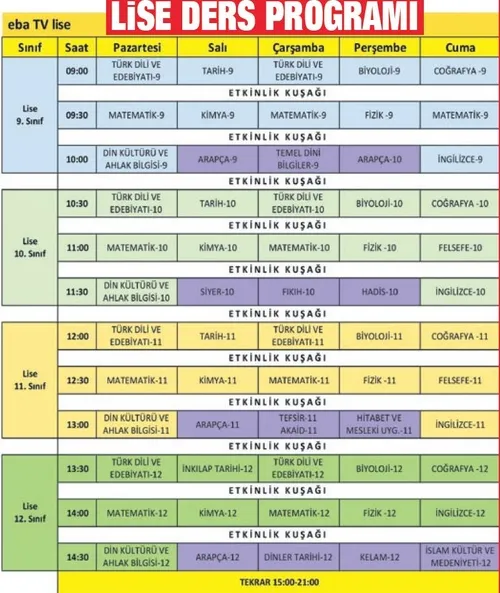 KAÇIRILAN DERSLER İÇİN YAYINLAR TEKRARLANACAK