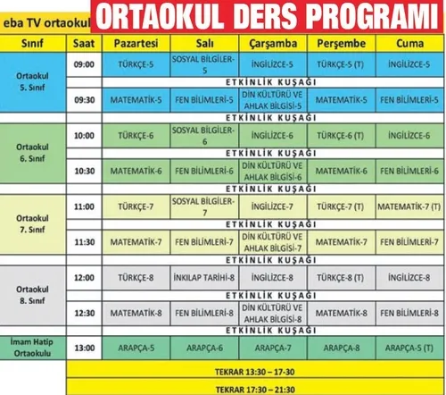 Ayrıca bir de iyileştirme programı yapılacak. Diyelim çocuk izleyemedi, kaçırdı. Tekrar saatleri var.