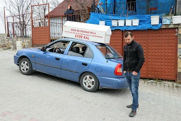Bolu'da Murat Çalık, evden çıkanları aracının üstüne koyduğu tabutla uyardı. Sela okutarak gezen Çalık'ın, aracı bağlandı. Kendisine de 400 lira ceza yazıldı.