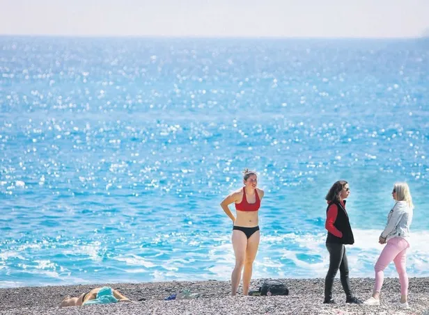 Antalya'da vatandaşlar evde kal çağrısına uydu. Konyaaltı Sahili'nin tadını ise turistler çıkardı. Hava sıcaklığının 19 derece olduğu kentte turistler bol bol yüzüp güneşlendi.