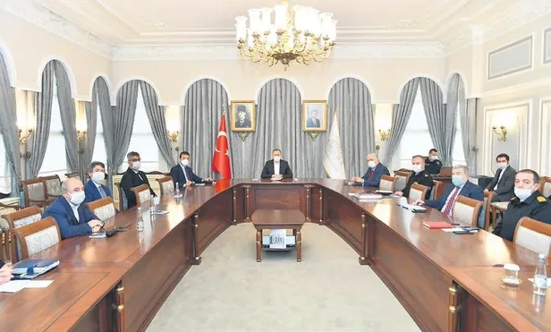 Virüs salgınıyla mücadele için dün 81 ilin valiliğinde pandemi toplantısı düzenlendi. İstanbul Valisi Ali Yerlikaya ile katılımcıların 2 saat süren toplantıda maske takması dikkat çekti.