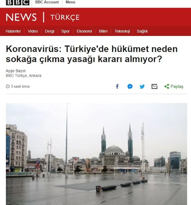 Türkiye'de sokağa çıkma yasağı şakşakçılarının arasında Türkiye karşıtı operasyonel haberleriyle bilinen İngiliz yayın organı BBC de yer alıyor. Koronavirüsün en çok vurduğu ülkelerden biri olan İngiltere'nin sahip olduğu BBC, sıkça Türkiye'de neden sokağa çıkma yasağı uygulanmadığı konusunda haber yapıp vatandaşları provoke ediyor.