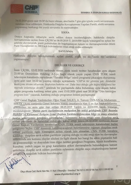 Evde kalın uyarılarının geldiği bugünlerde CHP İstanbul İl Disiplin Kurulu'nun aldığı CNN kararı bugün elime ulaştı. Karara muhalefet şerhi düşen meslektaşlarıma teşekkür ederim. CHP Yönetimi, İstanbul İl Yönetiminin talebi ve Disiplin Kurulu'ndaki bazı isimlerin verdiği bu karar yok hükmünde olmaya muhtaçtır.