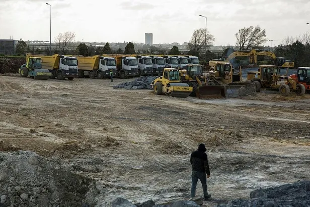 Çok sayıda iş makinesi ve kamyon ile çalışmalar yapılıyor.