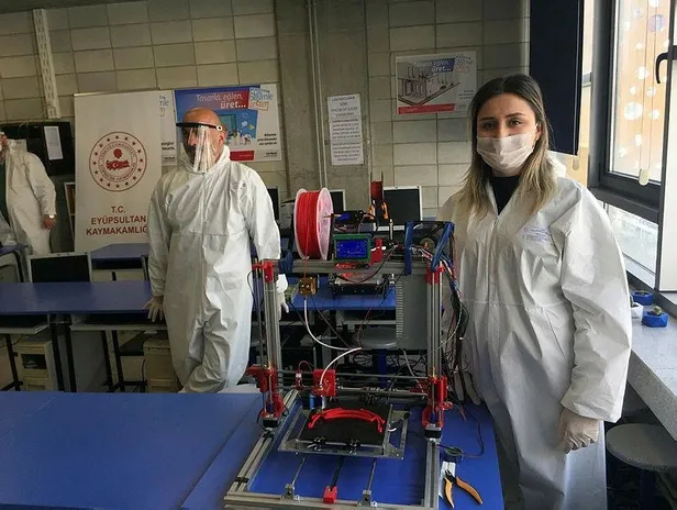 Eyüpsultan Belediyesinden yapılan açıklamaya göre, Eyüpsultan İlçe Milli Eğitim Müdürlüğünde görevli öğretmenler belediyenin desteğiyle sağlık çalışanları için 3D yazıcılarla haftada bin yüz koruma siperliği üretecek.