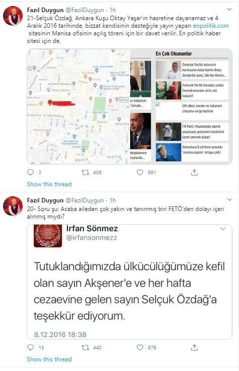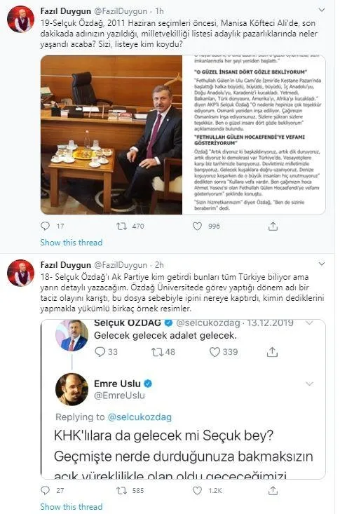 İşte gazeteci Fazıl Duygun'un kirli ilişkiyi deşifre ettiği o tweetler: