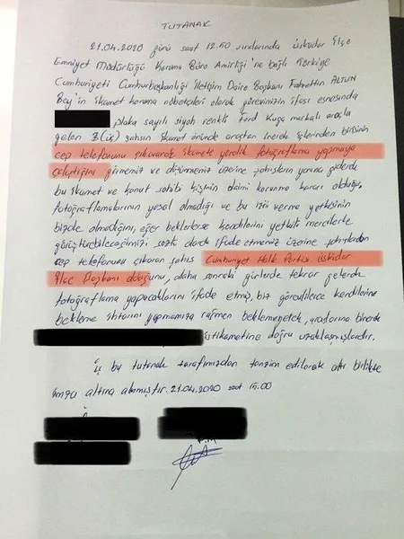 AK Parti Üsküdar İlçe Başkanı Adem Kaan Pehlivan da; CHP Üsküdar İlçe Başkanı Suat Özçağdaş'ın Üsküdar İlçe Emniyet Müdürlüğü'nde cep telefonunu çıkararak Fahrettin Altun'un ikametine yönelik fotoğraf çektiğini kabul ettiğini açıkladı.