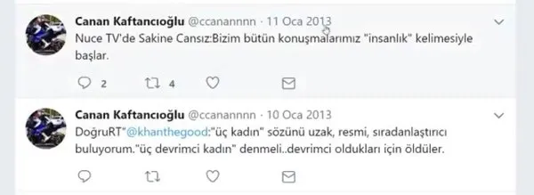 CHP İstanbul İl Başkanı Canan Kaftancıoğlu'nun 2012-2017 tarihleri arasında sosyal medya hesabı üzerinden yaptığı paylaşımları nedeniyle beş ayrı suçtan 9 yıl 20 gün hapis cezası almıştı. Mahkeme kararında, Canan Kaftancıoğlu'nun PKK/KCK üst düzey yöneticilerinden Sakine Cansız'a ilişkin yaptığı paylaşım nedeniyle 'silahlı terör örgütü propagandası yapmak' suçundan da 1 yıl 6 ay ceza vermişti.