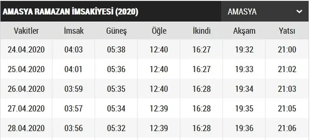 Amasya sahur ve iftar saat kaçta? Amasya iftar vakti ve sahur saatleri 2020! Amasya imsakiye 2020!