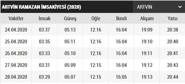 Artvin iftar vakti ve sahur saatleri rahmet ve bereket ayı olan Ramazan ayının gelmesiyle birlikte o ilde yaşayan vatandaşlar tarafından yoğun olarak araştırılmaya başlandı. İslam alemi 11 Ayın Sultanı olan Ramazan ayını ibadetlerle geçirecek. Oruç ibadetlerini yerine getirecek olan milyonlarca kişi sahur vakitleri hakkında arama motorlarında araştırmalarını sürdürüyor. Bu nedenle Artvin ilinde ikamet eden ve sahura kalkacak olan vatandaşlar Artvin iftar vakti ve sahur saatleri 2020 ile ilgili aratmalar yaparak sahur saatini öğrenmek istiyor. Peki, Artvin ilk sahur ve iftar saat kaçta? İşte Diyanet İşleri Başkanlığı Artvin imsakiye 2020...