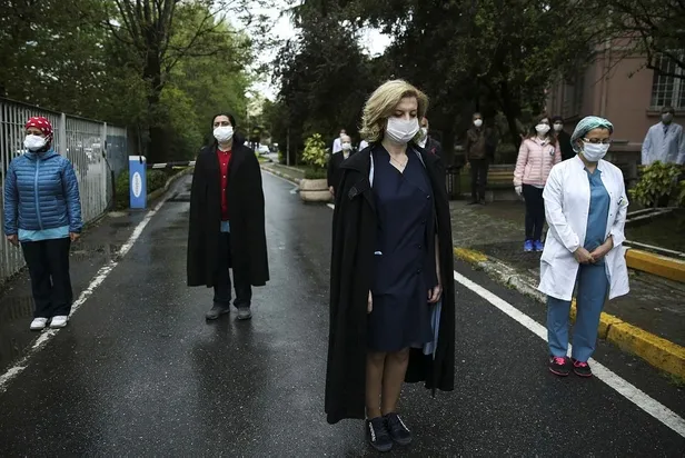 Dilmener'in meslektaşları, dekanlık binası önünde toplanarak bir dakikalık saygı duruşunda bulundu.