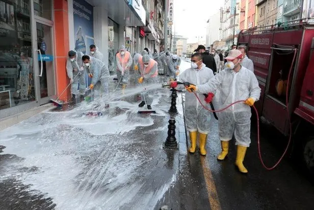 CADDEYE DETERJAN: Caddeler, yollar, yerler su ve deterjanla temizlenecek. Kuru süpürme, kimyasal püskürtme uygulamalarından kaçınılacak. Halka açık alanlarda merdiven, musluk, pos cihazı, asansör-elektrik düğmeleri gibi sık dokunulan yüzeyler sıkça dezenfekte edilecek.