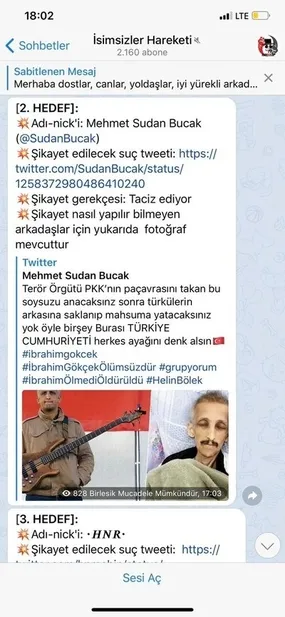 DHKP-C terör örgütü mensubu olduğu gerekçesiyle yargılanan İbrahim Gökçek'in ölümünün ardından DHKP-C terör örgütünü kınamak için ileti atanların sosyal medya adresleri sırasıyla kanalda belirtilip şikâyet edilmesi için çalışmaları hâlâ sürüyor.