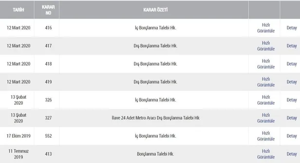 CHP'li İstanbul Büyükşehir Belediyesi Meclis üyeleri; 28 Mart 2004 ila 31 Mart 2019 tarihleri arasında; AK Partili Kadir Topbaş ve Mevlüt Uysal'ın İstanbul Büyükşehir Belediye başkanlığı yaptığı 15 yıllık dönemde hiçbir borçlandırma yetkisine onay vermediği bildirildi.