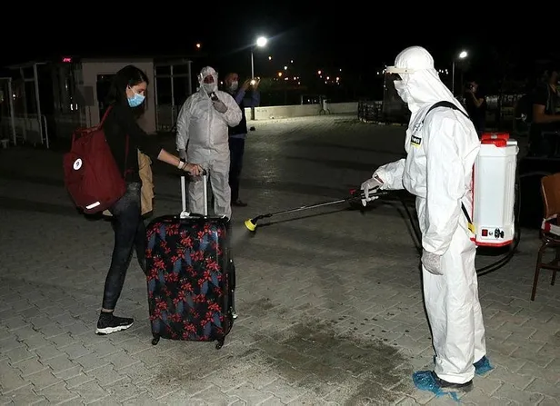 Koruyucu tulum giydikleri, maske ve eldiven taktıkları görülen Türk vatandaşları, 14 günlük karantina dönemini geçirecekleri Isparta ve Burdur'a hareket etti.