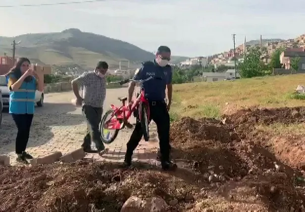 Bisikleti karşısında görünce mutluluğu yüzüne yansıyan Dağ, emniyet ekiplerine teşekkür etti. Dağ, daha sonra bisiklete binerek, evlerinin önünde tur attı.