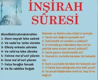 İnşirah Suresi nerede indirildi, kaç ayetten oluşur? İnşirah suresi Türkçe meali, okunuşu ve anlamı!