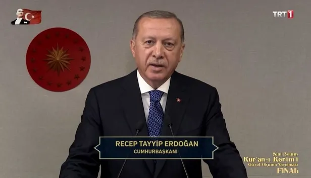 Erdoğan, Kur'an-ı Kerim tilavetinin, Kur'an ayı olan ramazan-ı şerifi hakkıyla ihya etmenin en güzel yollarından olduğunu aktararak, "Peygamber Efendimiz 'Güzel ses Kur'an'ın güzelliğini artırır.' buyurur. Ülkemizin farklı bölgelerinden bu yarışmaya iştirak eden Kur'an bülbüllerinin her birini şahsım ve milletim adına ayrı ayrı tebrik ediyorum. Bu sene tüm dünyayla birlikte ülkemizi de etkileyen koronavirüs salgını sebebiyle buruk bir ramazan geçirdik. Ancak, Rabb'imizin buyurduğu gibi 'Her zorlukla beraber muhakkak bir kolaylık vardır'. İnşallah bu musibetin de üstesinden geleceğiz." diye konuştu.