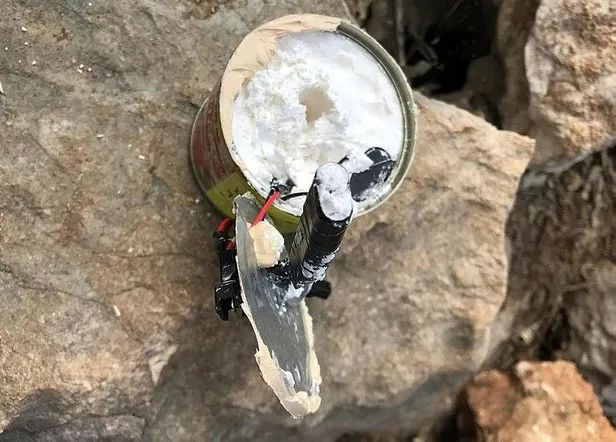 Dilinde yanma olursa kabloyu birbirine bağlama. Yanma yoksa bağla. 15 dakika sonra patlar. Bu zaman ayarlı" yazılı olduğu saptandı.