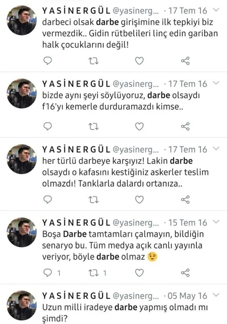 Ayrıca CHP'li Ergül'ün 15 Temmuz darbe girişimi günü ise "Boşa darbe tamtamları çalmayın, bildiğin senaryo bu. Tüm medya açık canlı yayınla veriyor, böyle darbe olmaz" dediği iletilerinden ortaya çıktı.