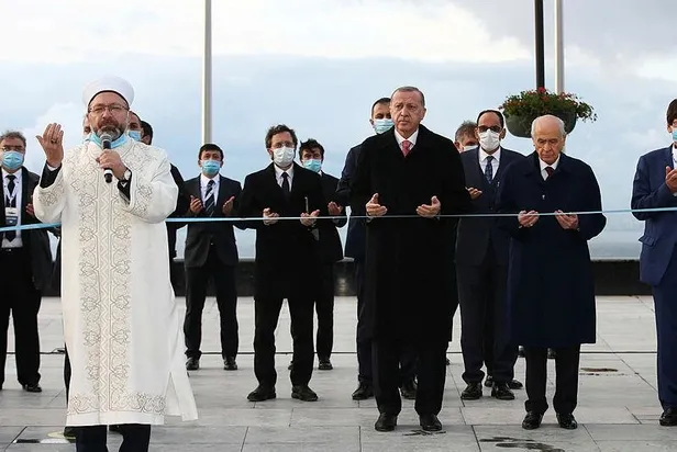Cumhurbaşkanı Erdoğan, konuşmasının ardından beraberindekilerle açılışın yapılacağı alana geçti. Burada Diyanet İşleri Başkanı Ali Erbaş, dua etti.