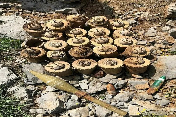 Operasyonda kayalıkların altına saklanmış çok sayıda silah ve mühimmat ele geçirildi.