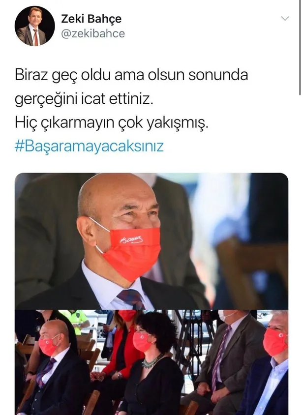 Turan Erdoğan ismindeki vatandaş ise sosyal medyadan şunları yazdı: "Yine Atatürk istismarcılığı dün İzmir yağmur sularında sahada olmayan bugün sahada hemde Atatürk maskeli Nasrettin Hoca misali ye kürküm ye hizmet kimin umurunda."