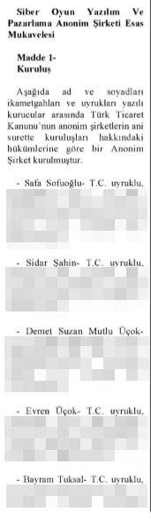 GERÇEK: Peak'in şirket hisselerini devretmeden önceki şirket yönetim kurulunda; Sidar Şahin, Aycan Avcı, Eda Azaroğlu, Evren Üçok ve Galip Murat Selçuk yer aldı. Peak'in şirket hisselerini devrettikten sonraki şirket yönetim kurulunda; Sidar Şahin, Demet Suzan Mutlu Üçok ve Evren Üçok yer alıyor.