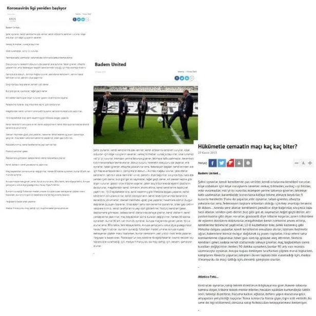 14: (Sözcü – "Koronavirüs ligi yeniden başlıyor" – 9 Mayıs 2020) = (Sözcü – "Badem United" – 13 Nisan 2016) = (Hürriyet – "Hükümetle cemaatin maçı kaç kaç biter?" – 27 Kasım 2013)