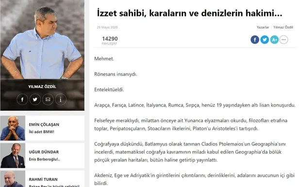 4: (Sözcü – "İzzet sahibi, karaların ve denizlerin hakimi…" – 29 Mayıs 2020) = (Sözcü – "1453" – 29 Mayıs 2016)