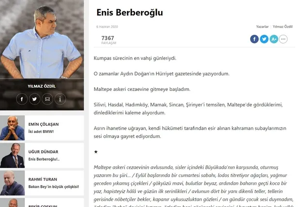 1: (Sözcü – "Enis Berberoğlu" – 6 Haziran 2020) = (Sözcü – "Maltepe" – 17 Haziran 2017)