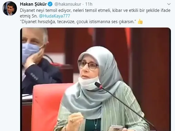 HDP Milletvekili Hüda Kaya, Türkiye Büyük Millet Meclisi’nde Diyanet İşleri Başkanlığı’nı hedef aldı. Kaya, “Diyanet meşru değildir” derken sosyal medyadan da tepki mesajları yazıldı. HDP’li Hüda Kaya’ya ise Fetullahçı Terör Örgütü mensubu Hakan Şükür’den geldi. Sabah Gazetesi'nden Damla Kaya'nın özel haberi.