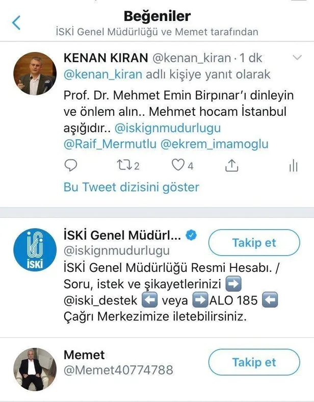 İSKİ Genel Müdürlüğü; söz konusu tweete beğeni de bulunması dikkat çekti.