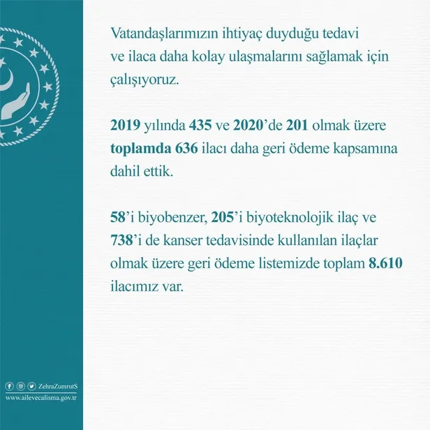 Bugün itibarıyla geri ödeme listemizde 8.610 ilacımız var.https://t.co/B0l08jzAZq pic.twitter.com/RuHBckpr0i— Zehra Zümrüt Selçuk (@ZehraZumrutS) June 15, 2020