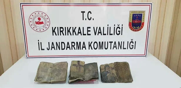 Kırıkkale'de jandarma ekiplerince düzenlenen operasyonda, Hıristiyanlığın ilk dönemlerine ait ikonografik sahnelerin tasvir edildiği dini görsellerden ceylan derisi üzerine işlendiği 3 dua kitabı ele geçirildi, 1 kişi gözaltına alındı.