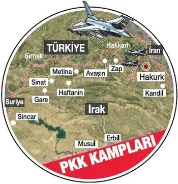 Teröristlere nefes aldırmamakta kararlı olan Türkiye, PKK'lıların üs olarak kullandığı Kuzey Irak'taki Sincar, Karacak, Kandil, Zap, Avaşin Basyan ve Hakurk'taki terör yuvalarını Pençe-Kartal Operasyonu ile vurdu.