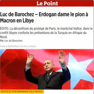 Türkiye'nin Libya'da Libya'nın meşru Libya Hükümeti'ni destekleyerek darbeci Hafter güçlerinin yenilgi üstüne yenilgi almasını yorumlayan Fransız Le Point Dergisi; Emmanuel Macron'un darbeci Hafter'i destekleyerek büyük bir hata yaptığını, ve Cumhurbaşkanı Erdoğan'ın Libya'da zafer kazandığını belirtti.