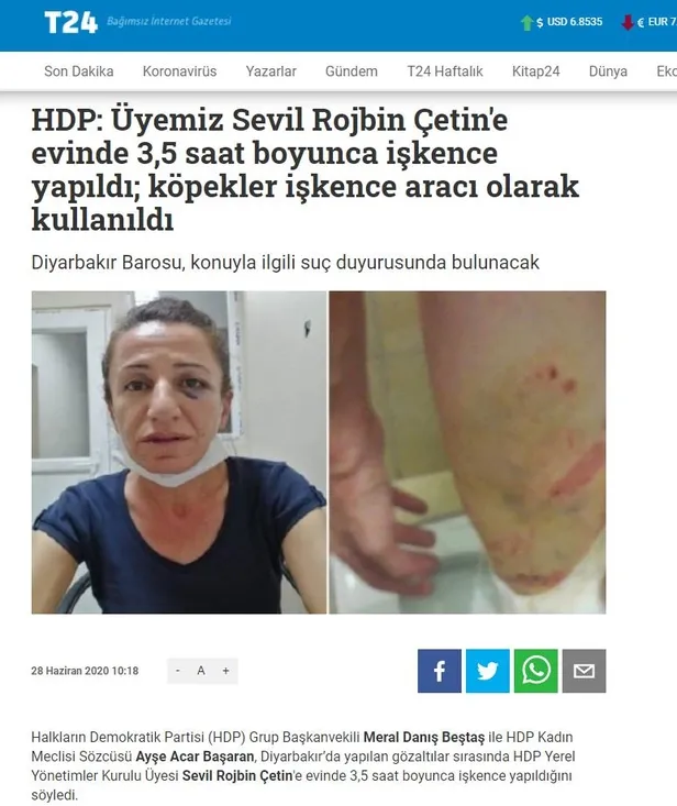 HDPKK destekçisi çamur medyasının yalanları bir kez daha çöktü. Diyarbakır'da 26 Haziran'da düzenlenen operasyonda gözaltına alınan Sevil Çetin'e köpekle işkence yapıldığı iddiaları üzerine terör destekçisi birçok site sosyal medya hesaplarından yalan haberlerle provokasyon yapmaya çalıştı.