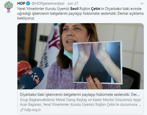 Terör örgütünün siyasi ayağı HDP'den yapılan açıklamada, "Üyemiz Sevil Rojbin Çetin'e evinde 3.5 saat boyunca işkence yapıldı; köpekler işkence aracı olarak kullanıldı." ifadelerine yer verilerek provokasyon çağrısı yapıldı.